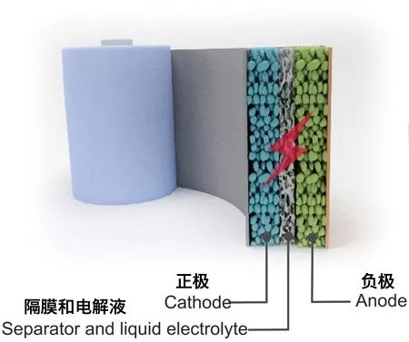商用的锂离子电池主要由四部分组成,分别是正极、负极、隔膜和电解液。