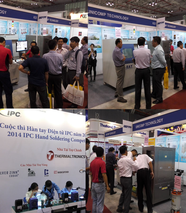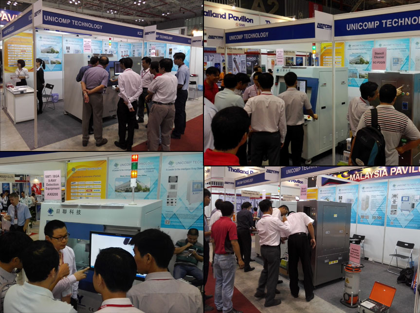 ng28.com科技作为中国X射线智能检测装备的领航者,协同越南当地代理商一起向观众展示了用于SMT焊接检测的微聚焦X射线检测设备、全气动钢网清洗机、及多款用于汽车零部件、精密压铸件、轮胎轮毂、管道及压力容器等行业的工业无损探伤X射线检测设备。经过多年来技术研发上的潜心钻研与不断创新,其新颖的外观、精密多轴运动结构、良好的用户友好软件界面、清晰的成像效果、简便的操作系统、智能高效的自动化检测方案等特性深受各专业观众及代理商的高度肯定与赞赏。