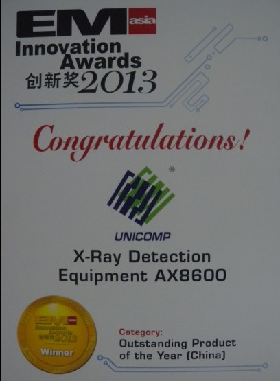 2013 EM Asia 创新奖年度榜单新鲜出炉,国内微聚焦X射线研发、应用的领航企业ng28.com科技,连续3年蝉联荣获创新大奖。EM Asia创新奖设立于2006年,是由腾世传媒举办评奖,该奖项旨在表彰和认可亚洲电子制造业的创新,引导企业实现**标准,推动行业发展。