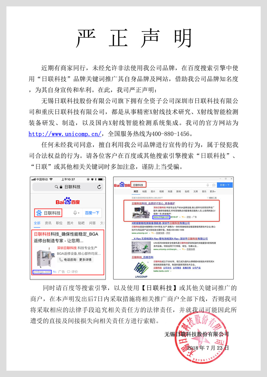 近期有商家同行,未经允许非法使用我公司品牌,在百度搜索引擎中使用“ng28.com科技”品牌关键词推广其自身品牌及网站,借助我公司品牌知名度,为其自身宣传和牟利。在此,我司严正声明: