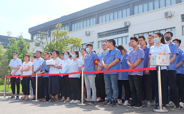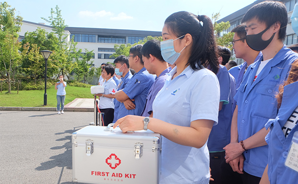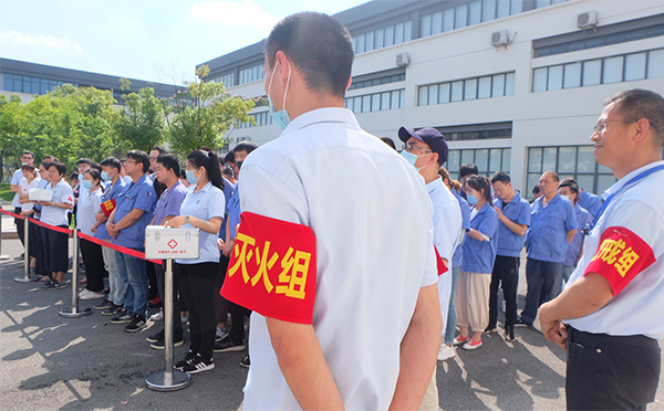 随着警报声响起,各部门员工在紧急小组成员们带领下进行有序疏散撤离,到达安全区域后人员按部门整齐站队,各部门负责人清点人数并报告撤离情况,紧接着开展了灭火器、消防栓、急救包等各项灭火救援器材的实战演练。