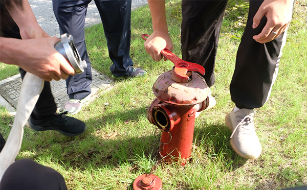 专业人员指导消防栓的使用